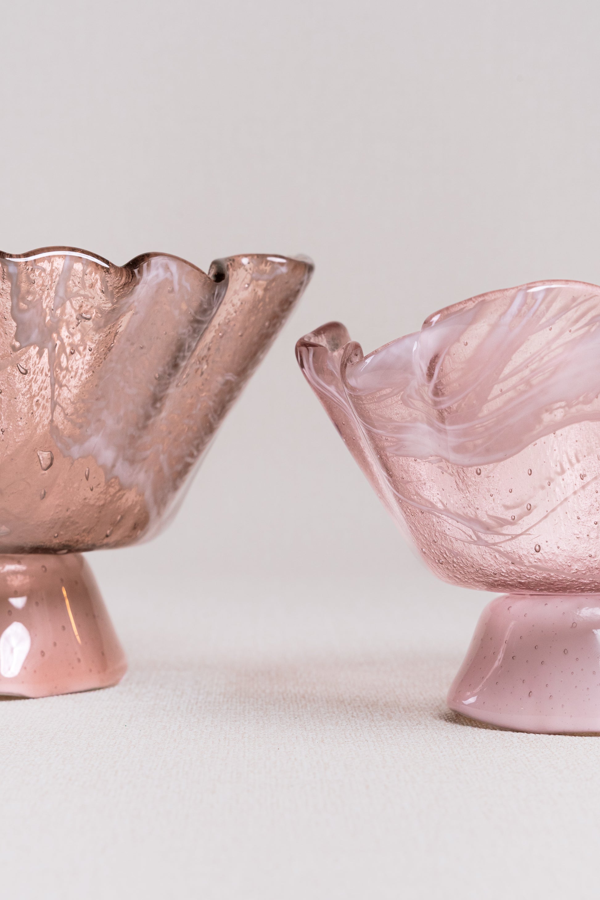 Pink clear, textured finish that catches light beautifully